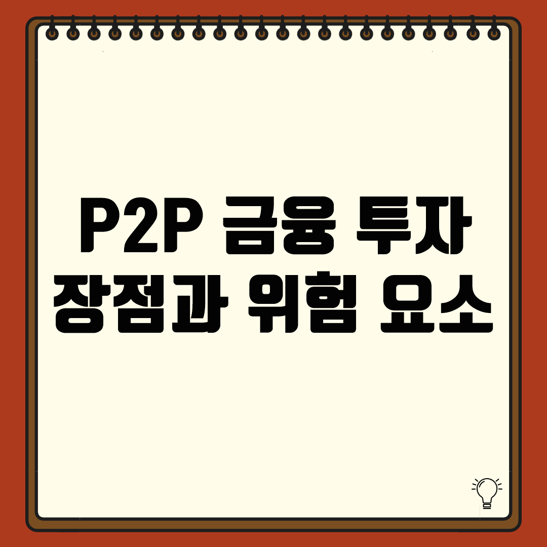 P2P 금융 투자는 높은 수익률을 기대할 수 있지만, 원금 손실 가능성이 있는 투자 상품입니다. 신뢰할 수 있는 플랫폼을 선택하고, 철저한 리스크 관리 전략을 수립하여 안전한 투자를 진행하세요!